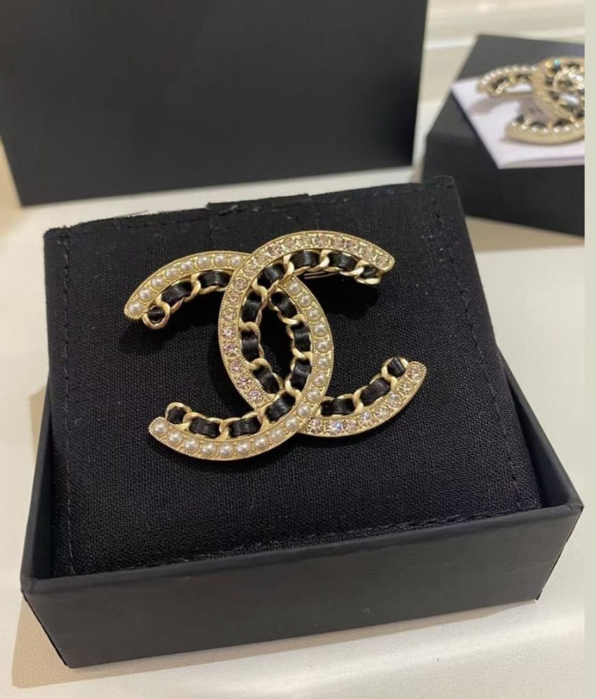 بروش CC فاخر بتصميم السلسلة واللؤلؤ