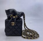حقيبة شانيل باكيت ميني سوداء مع سلسلة كروس بودي | CHANEL Black Mini Bucket Chain Crossbody Bag