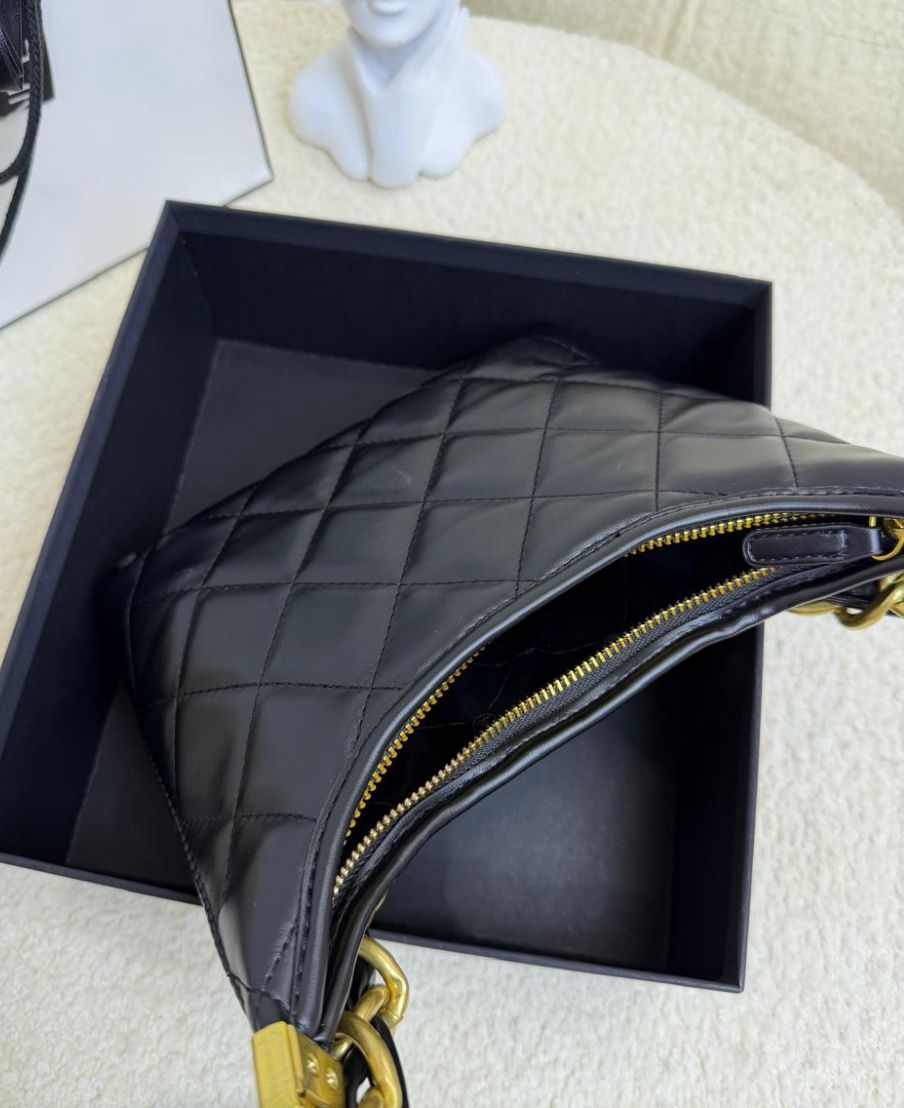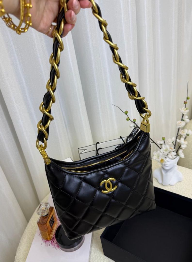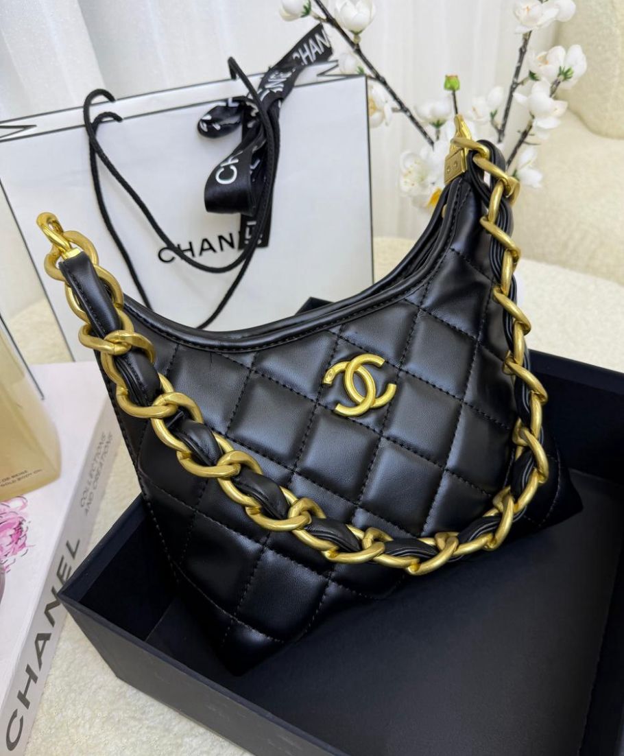 حقيبة هوبو شانيل سوداء – جلد فاخر مع سلسلة ذهبية (VIP Gift)