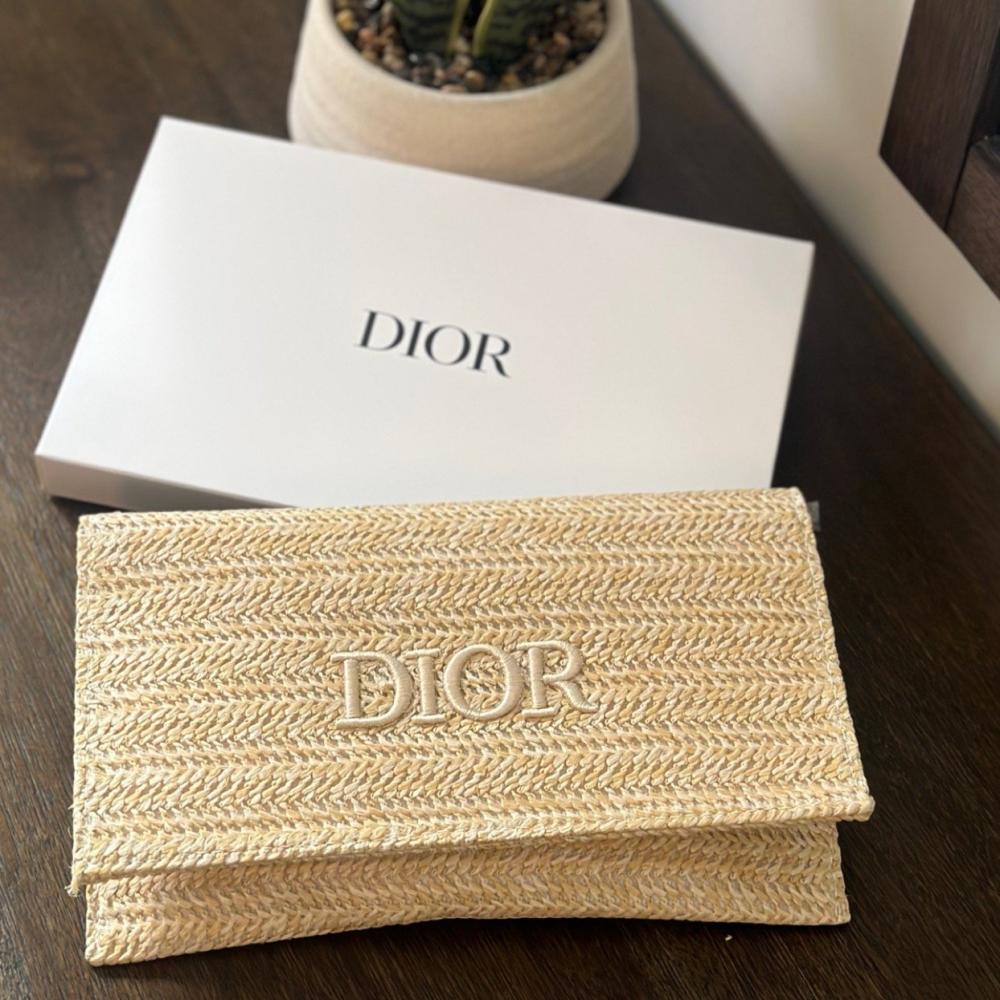 حقيبة يد أنيقة من ديور (Dior Beige Woven Pouch).