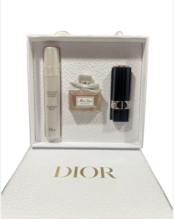 طقم ديور الفاخر – عطر، سيروم، وأحمر شفاه