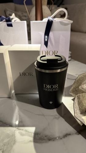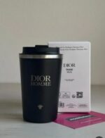 كوب سفر أنيق من مجموعة Dior Homme بتصميم فاخر يعكس هوية الدار العصرية. يأتي باللون الأسود غير اللامع ومزين بشعار DIOR HOMME باللون الفضي مع شعار النحلة الأيقوني، ليمنح لمسة راقية ومميزة.