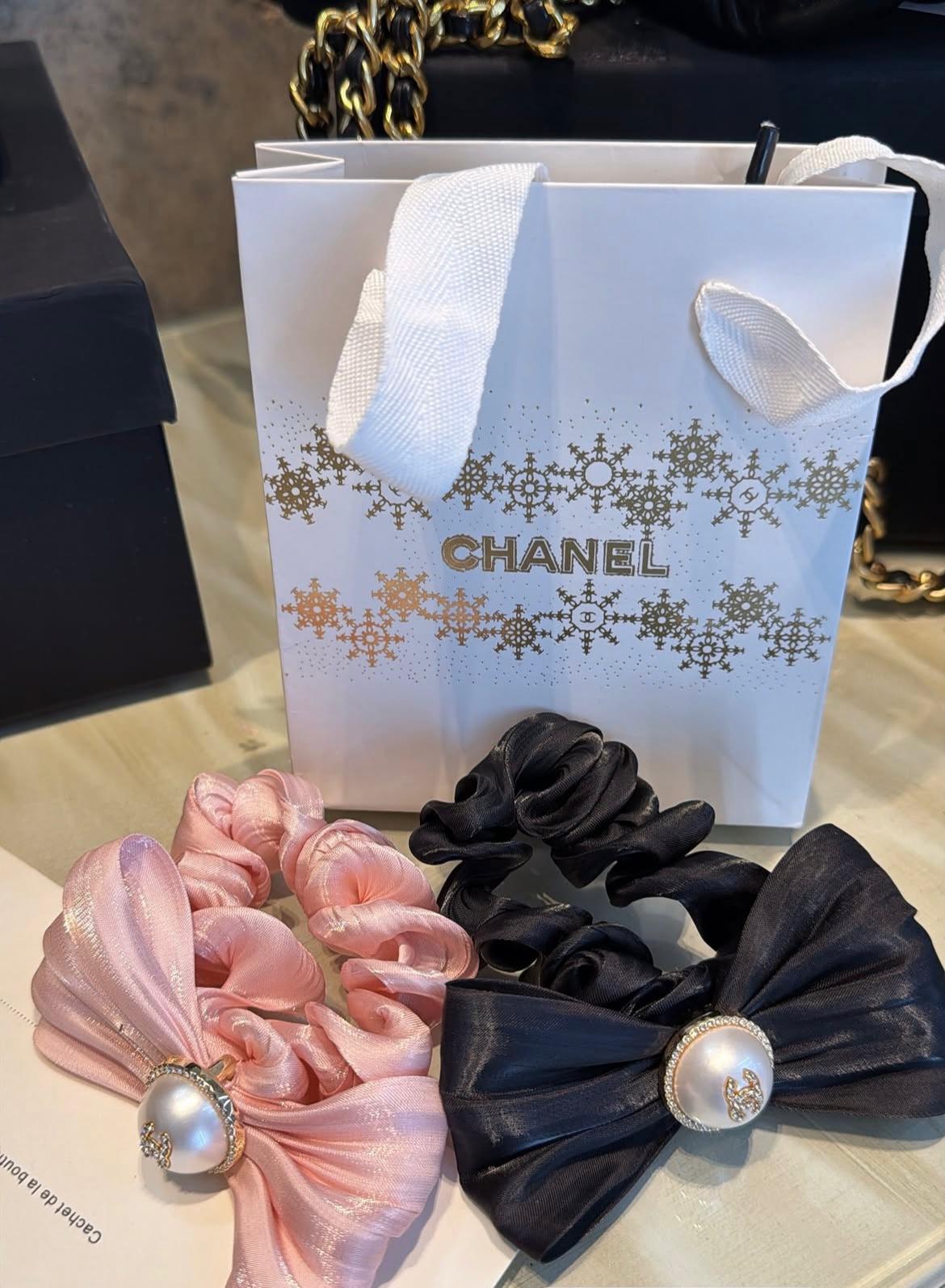 مع كيس شانيل Chanel Pink & Black Hair Tie Accessories Set