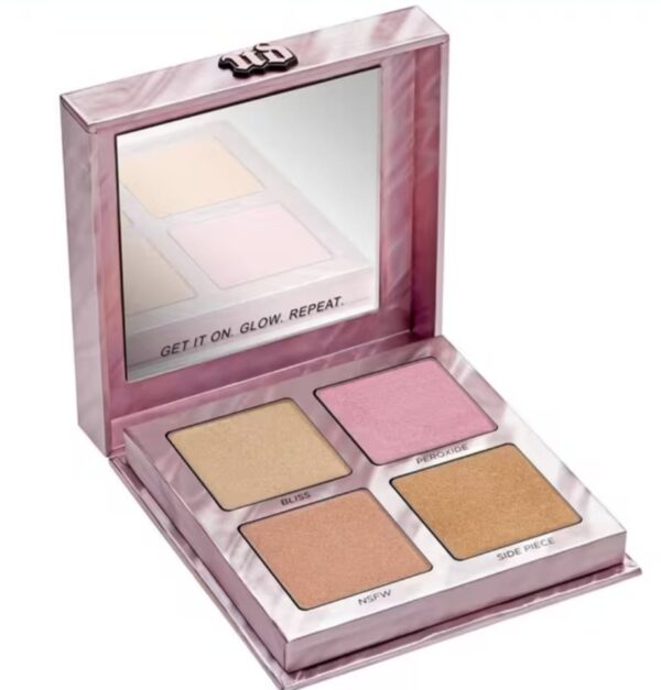 لوحة Afterglow Highlight Powder Palette من Urban Decay تمنحك مجموعة من ألوان الهايلايتر المتنوعة لإضاءة الوجه وإبراز الملامح بطريقة طبيعية أو دراماتيكية حسب الرغبة.