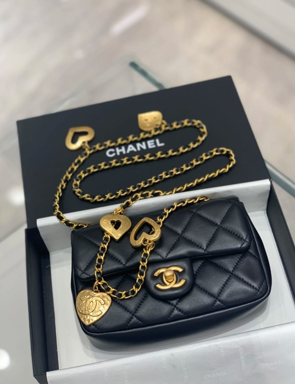 حقيبة Chanel Classic Flap Mini باللون الأسود الأيقوني، رمز للأناقة الخالدة والفخامة الراقية. تصميم كلاسيكي لا يخرج عن الموضة، مثالي للإطلالات اليومية والمناسبات الخاصة.