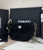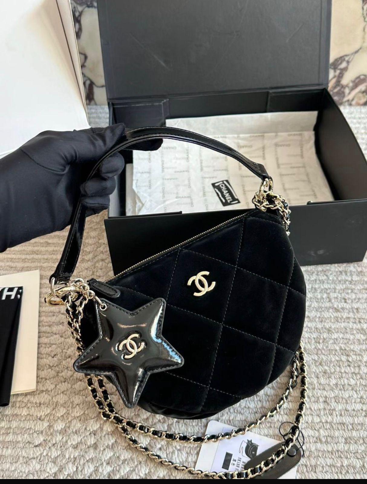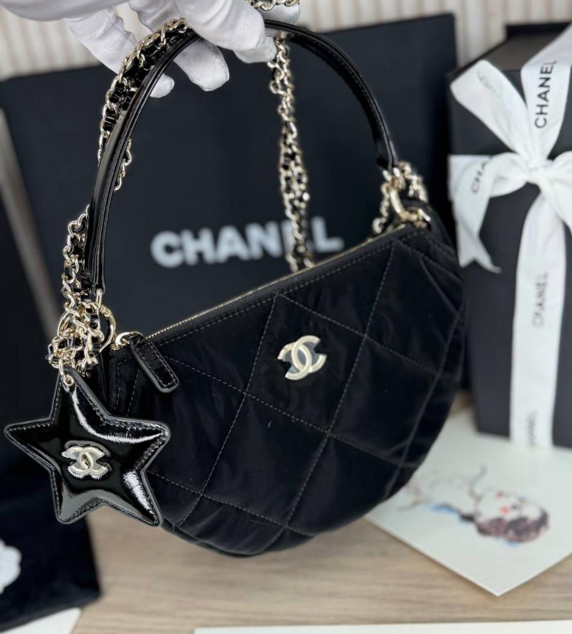هذه حقيبة يد فاخرة من شانيل من تشكيلة كوكو نيج 2025/26، مصممة بسلسلة أنيقة للحمل على الكتف أو اليد. مصنوعة من النايلون بتأثير مخملي مع جلد عجل مجعد ولمسات معدنية باللون الذهبي، مما يمنحها مزيجًا مثاليًا من الأناقة والفخامة. تناسب الحقيبة المناسبات الرسمية والخروجات الراقية، وتبرز تصميم شانيل الكلاسيكي مع لمسة عصرية