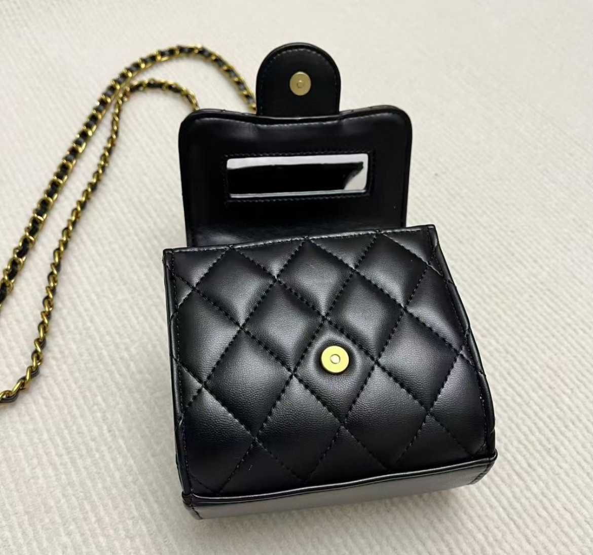 تحتوي الحقيبة على مقبض علوي عملي يمنحها طابعًا أنثويًا مميزًا، بالإضافة إلى سلسلة ذهبية يمكن ارتداؤها على الكتف أو كحقيبة كروس لسهولة الحركة. تصميمها الصغير يجعلها مثالية للإطلالات اليومية الراقية أو المناسبات الخاصة، مع مساحة مناسبة لحمل الأساسيات مثل الهاتف، المحفظة الصغيرة ومستحضرات التجميل.