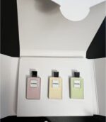 طقم أنيق من شانيل بارفان مستوحى من أيقونة زجاجات عطر شانيل الشهيرة، بتصميم مصغّر وراقي. يضم ثلاث قطع بألوان باستيل ناعمة (الوردي، الأصفر، والأخضر)، تحمل كل قطعة شعار CHANEL الكلاسيكي، لتجسّد أسلوب الدار البسيط والفاخر في آنٍ واحد.