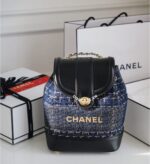 حقيبة ظهر فاخرة من شانيل بتصميم صغير وأنيق يجمع بين العملية والفخامة. مصنوعة من خامات عالية الجودة، مع تفاصيل دقيقة وشعار CC الأيقوني، لتعكس الرقي الكلاسيكي لشانيل.
