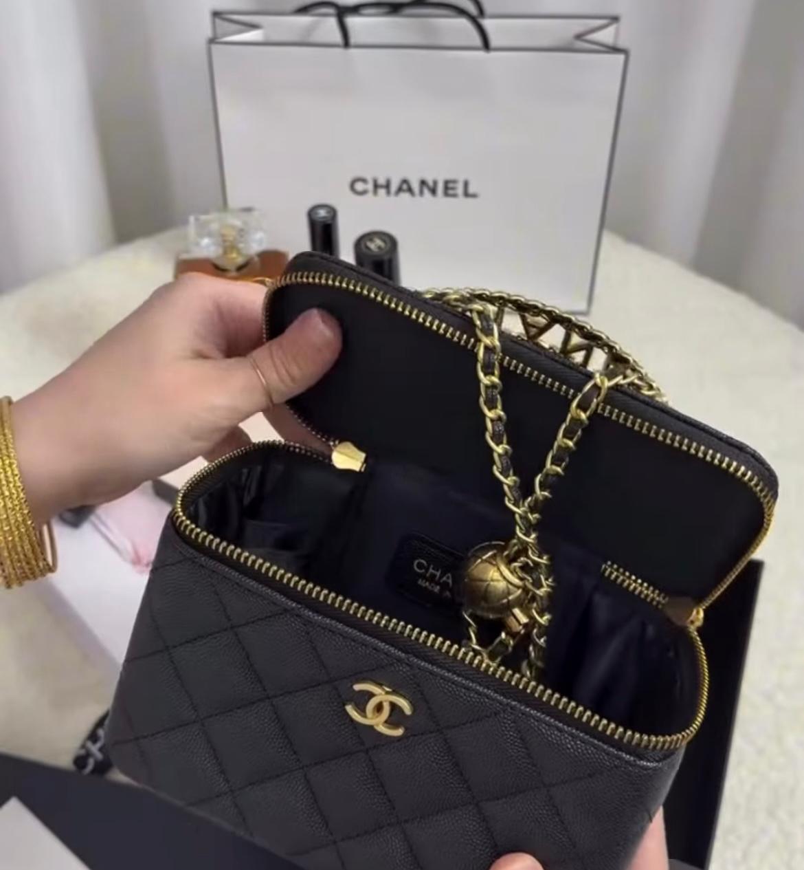 هذا المنتج عبارة عن حقيبة فانتي فاخرة من شانيل، مزودة بمقبض لسهولة الحمل. تتميز بتصميم أنيق وعصري يعكس فخامة العلامة التجارية، مع خامات عالية الجودة وتشطيب دقيق يضمن المتانة والجمال في الوقت ذاته. تعتبر هذه الحقيبة مثالية لتنظيم مستلزماتك الشخصية بأسلوب راقٍ ومترف.