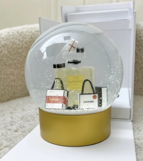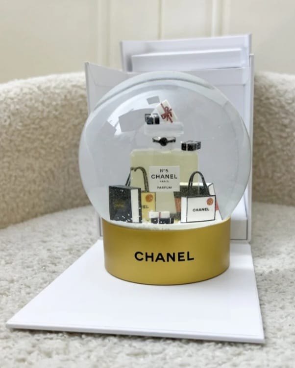 قطعة فاخرة من Chanel مقدّمة كـ VIP Gift بتصميم كريستماسي مميز على شكل Snow Globe مستوحى من زجاجات عطور شانيل الأيقونية. تصميم ساحر يعكس أجواء الأعياد مع لمسة فخامة كلاسيكية، مثالي لهواة الاقتناء ومحبات تفاصيل شانيل الحصرية.
