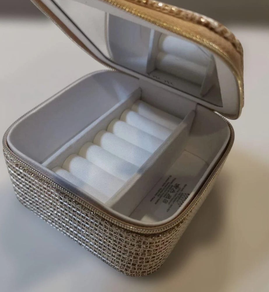 علبة مجوهرات فاخرة من ديور بتصميم مكعّب أنيق يجمع بين اللمسة العصرية والفخامة الكلاسيكية. مصنوعة بخامة لامعة بنقشة شبكية ذهبية تضفي عليها مظهرًا راقيًا، وتأتي مزوّدة بتفاصيل معدنية ذهبية وشعار ديور البارز في الواجهة. يتميز السحّاب بقطعة نجمة جذابة تضيف لمسة أنثوية راقية. حجمها المثالي يجعلها مناسبة لحفظ الخواتم، الأقراط، السلاسل وغيرها من القطع الصغيرة بطريقة منظمة وآمنة، كما تأتي داخل علبة ديور الأصلية لتجربة فاخرة ومتناسقة.