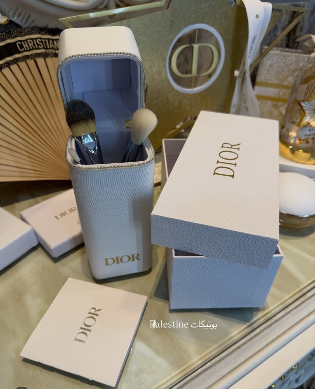 مجموعة فرش مكياج فاخرة من Dior، تضم جميع الفرش داخل حقيبة واحدة مقوّاة مصمّمة لحمايتها والحفاظ عليها. تأتي المجموعة داخل بوكسها الأصلي بالإضافة إلى بوكس خارجي أنيق، ما يجعلها خيارًا مثاليًا للاقتناء أو كهدية راقية.