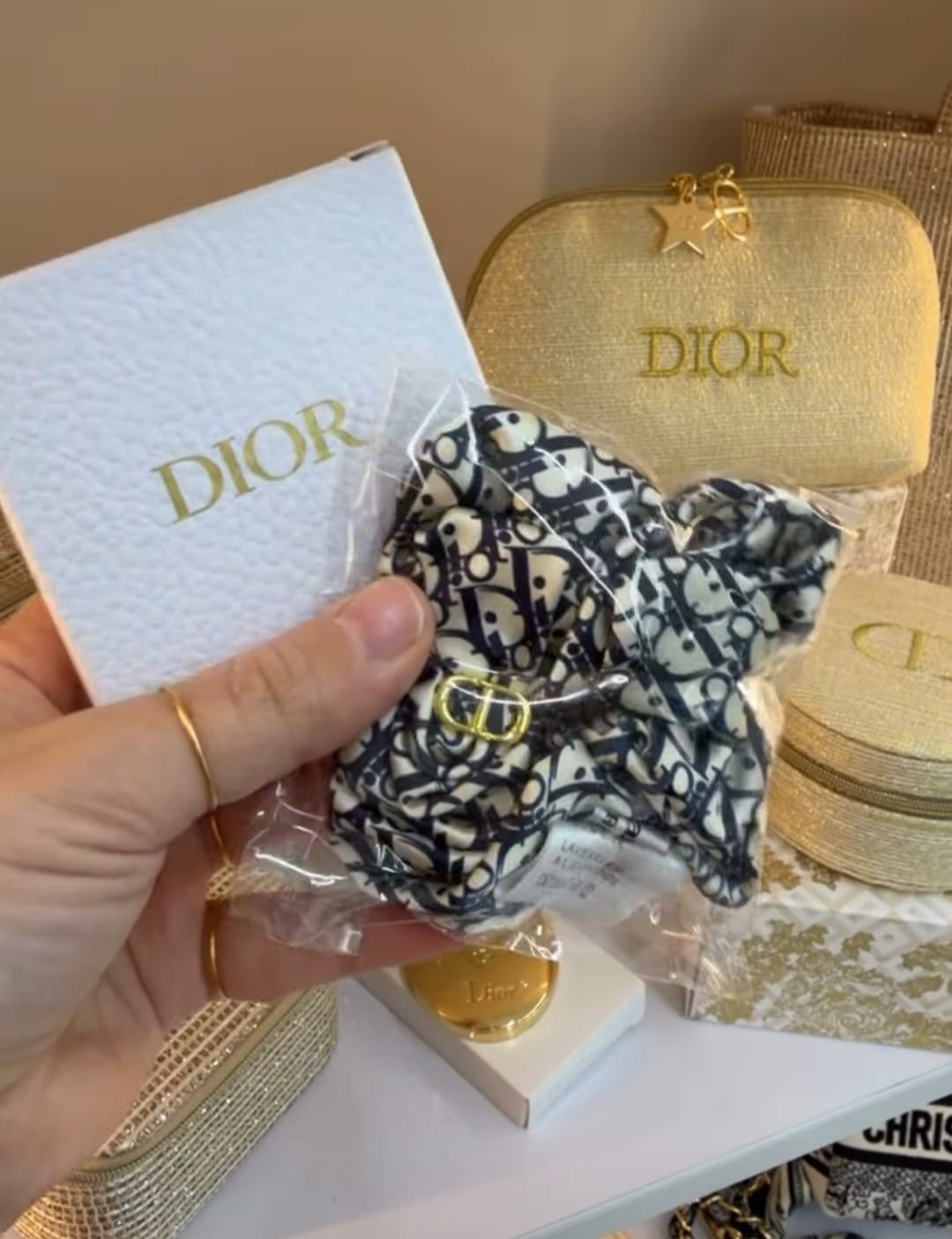 ربطة شعر سكرانشي فاخرة من Dior، مصممة بنمط Oblique الشهير للدار، لتضيف لمسة أنيقة وعصرية لتسريحاتك اليومية. قطعة عملية وراقية تناسب جميع أنواع الشعر وتمنح الإطلالة لمسة كلاسيكية مميزة.