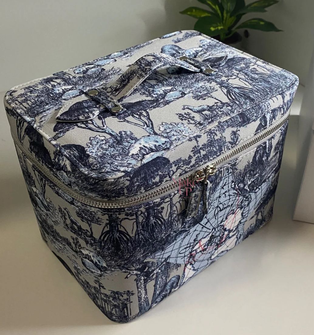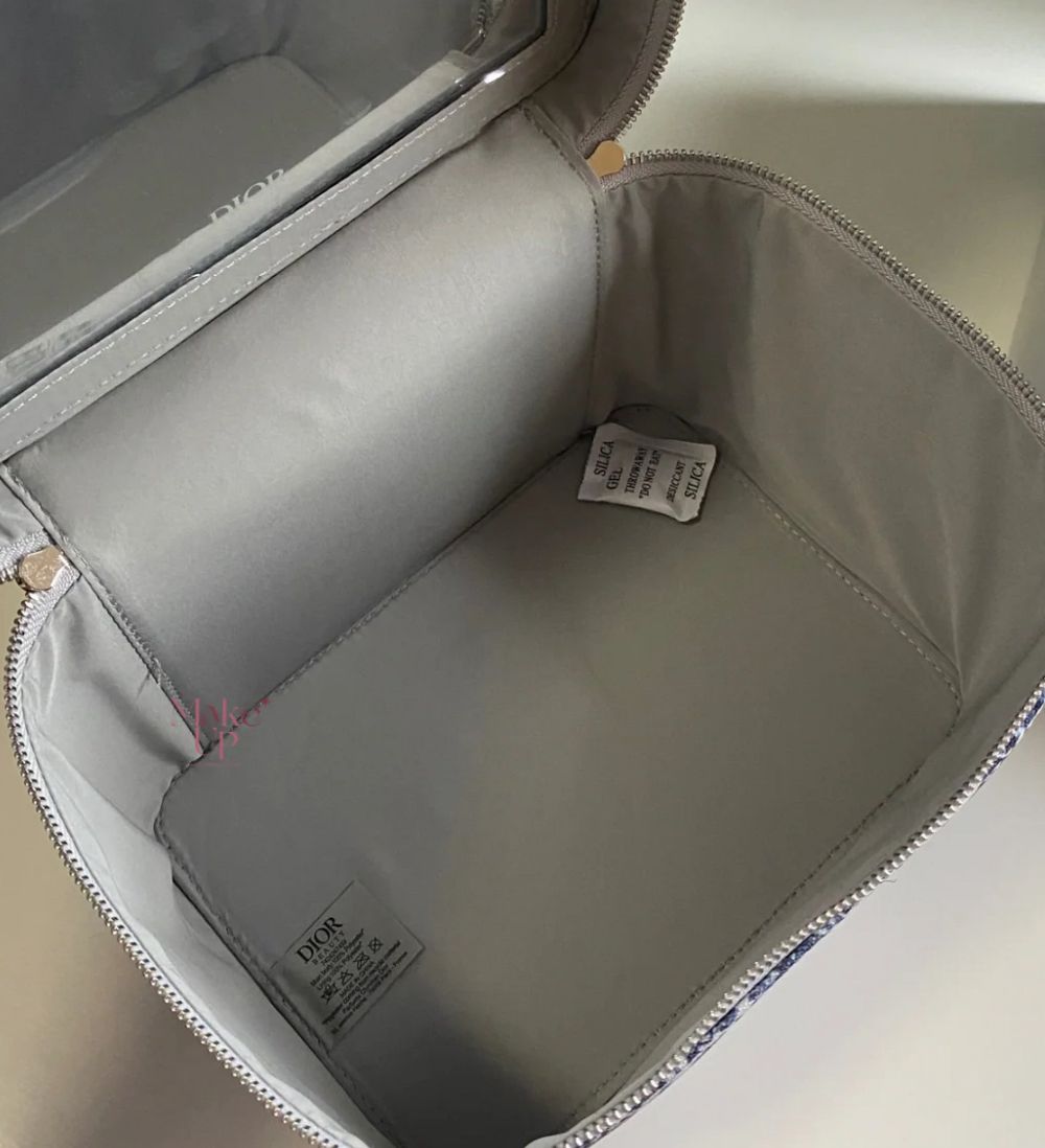 حقيبة فاخره من ديور مصممة خصيصاً لتكون مثالية للتخزين والتنظيم أثناء السفر أو الاستخدام اليومي. تأتي الحقيبة بلون البلاتيني الفخم مع مرآة مدمجة، مما يسهل التحقق من الماكياج أو العناية الشخصية في أي وقت. تتميز بتصميم أنيق وعصري يناسب جميع المناسبات ويضيف لمسة من الفخامة لأي حقيبة يد أو غرفة نوم.