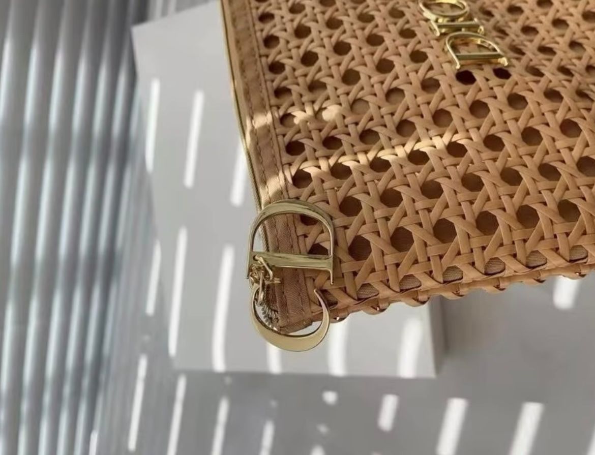 حقيبة يد أنيقة من Dior بتصميم فاخر مصنوع من خامة منسوجة بأسلوب عصري وجذاب. تتميز بلون طبيعي هادئ يمنحها لمسة صيفية راقية، مع شعار Dior المعدني في المنتصف لإبراز الفخامة. حجمها مناسب لحمل الأساسيات اليومية مثل الهاتف، المحفظة، ومستحضرات التجميل، مما يجعلها خيارًا مثاليًا للإطلالات الكاجوال والشيك في نفس الوقت. تصميمها العملي وخفة وزنها يوفران راحة في الاستخدام مع الحفاظ على مظهر أنيق ومميز.