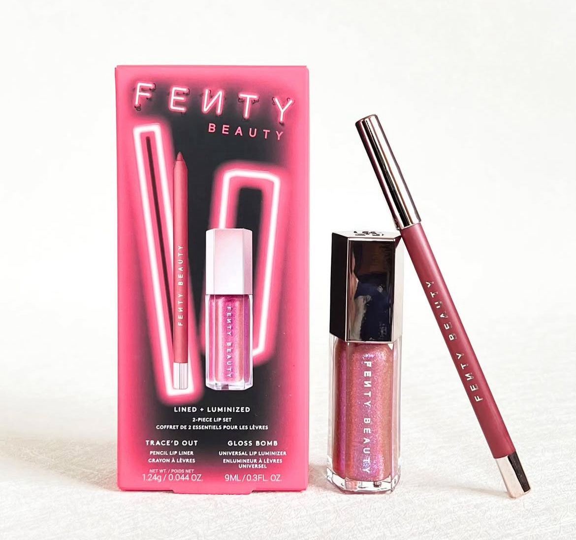 هي مجموعة شفاه من Fenty Beauty تضم أحمر شفاه قلم محدد (Lip Liner) ولمعة شفاه (Lip Gloss) متناسقة معاً. تم تصميم المجموعة لتحديد الشفاه بدقة ومنحها لوناً غنيّاً ولمعاناً جذاباً، مما يتيح الحصول على إطلالة مكتملة ومتناسقة بسهولة. المجموعة مثالية للاستخدام اليومي أو للمناسبات الخاصة، مع تركيبة مرطبة تحافظ على نعومة الشفاه طوال اليوم.