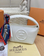 حقيبة يد من هيرميز بتصميم أنيق يعكس هوية العلامة الفاخرة، تأتي باللون الأبيض الكلاسيكي الذي يمنحها مظهراً ناعماً وعصرياً في الوقت نفسه. تتميز الحقيبة بتفاصيل دقيقة وتشطيب عالي الجودة، مع سكارف أنيق يضيف لمسة مميزة ويمكن تنسيقه بطرق مختلفة على المقبض لإطلالة أكثر فخامة.