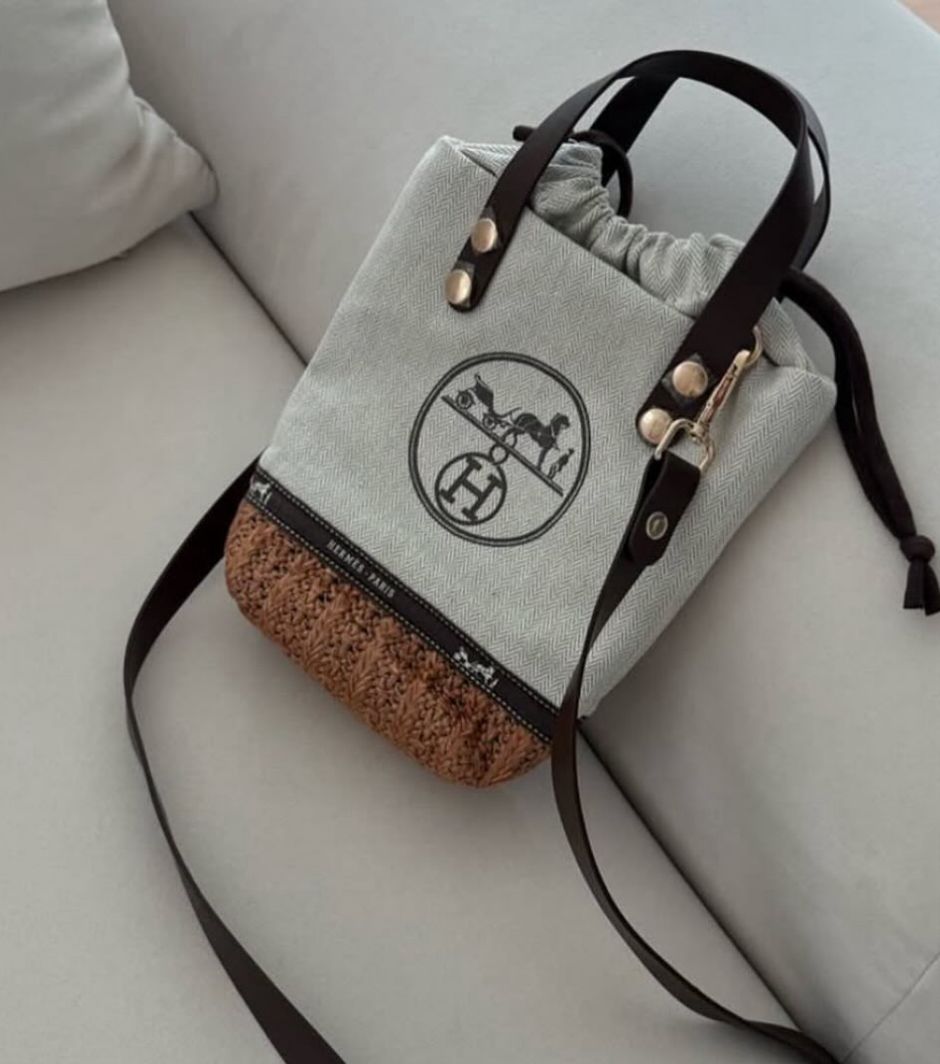 حقيبة دلو مميزة تم إعادة تصميمها بأسلوب عصري من كيس الغبار القماشي الأصلي الخاص بـ Hermès، لتجمع بين الطابع الفريد والاستدامة مع لمسة من الفخامة الراقية. تتميز بتصميم عملي وأنيق يعكس روح هيرميس الكلاسيكية، مع تفاصيل جلدية تضيف لمسة فاخرة وتبرز جمال الحرفية في القطعة.