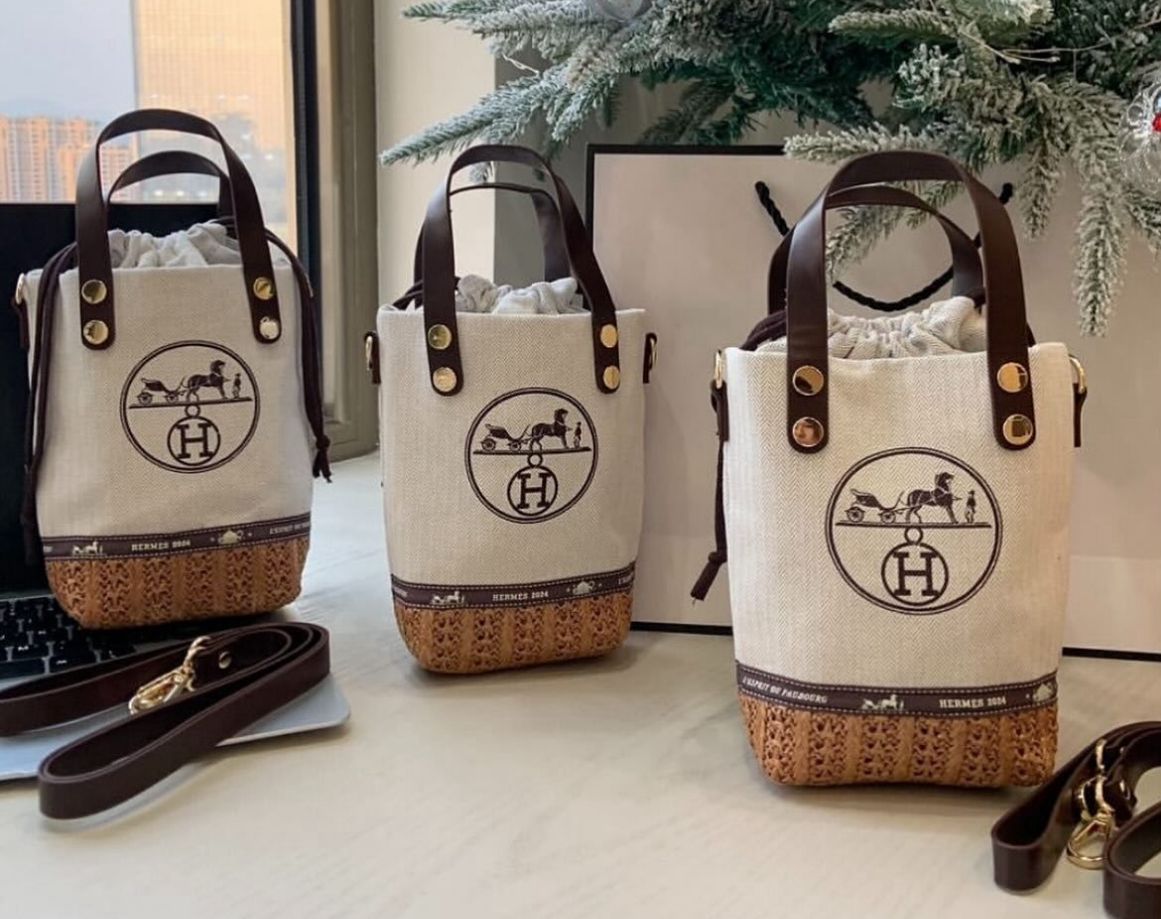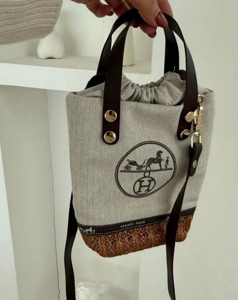 Hermès Reworked Canvas Dust Bag Bucket Bag بدون كرتونه