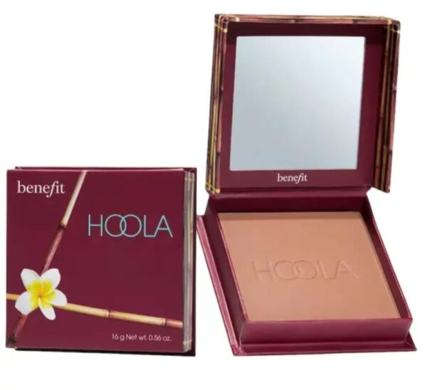 برونزر Hoola من Benefit يمنح البشرة لوناً ذهبياً دافئاً يشبه لون البشرة بعد التعرض لأشعة الشمس، مع لمسة نهائية مطفية طبيعية.