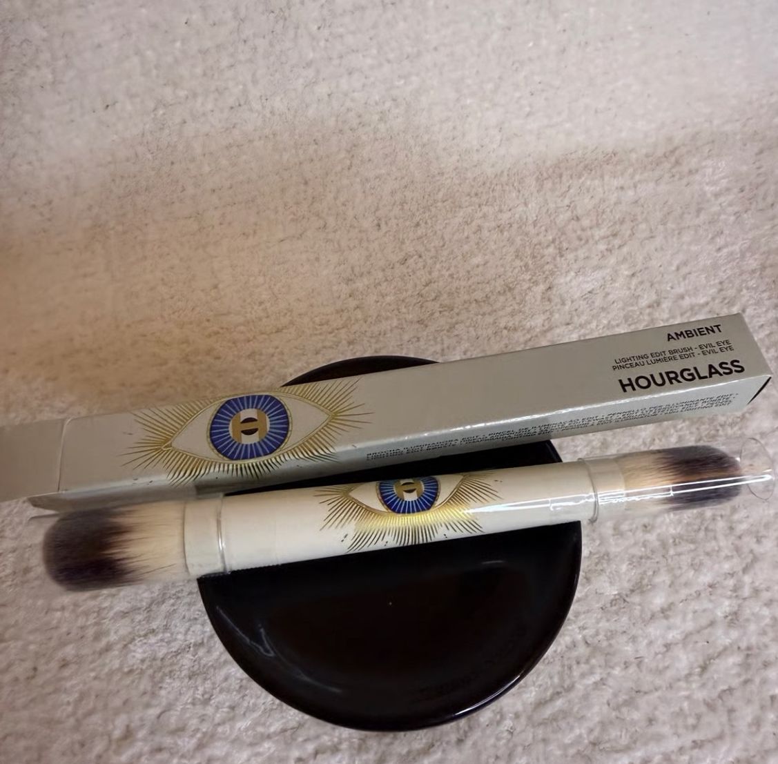 هذه فرشاة مكياج فاخرة ذات طرفين من ماركة Hourglass، إصدار محدود Ambient Lighting Edit Brush – Evil Eye. تتميز بتصميم عملي يجمع بين طرفين لتطبيق وتوزيع البودرة أو البرونزر أو الهايلايتر بسهولة ودقة. تحتوي على شعيرات ناعمة وكثيفة تمنح لمسة طبيعية ونتيجة متجانسة على البشرة دون تكتل. خيار مثالي للحصول على مكياج احترافي بلمسة نهائية راقية.