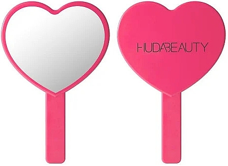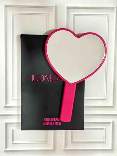 مرآة أنيقة وعملية من Huda Beauty، مصممة بشكل قلب جذاب باللون الوردي الساخن. مثالية لتطبيق المكياج أو اللمسات السريعة في أي وقت ومكان.