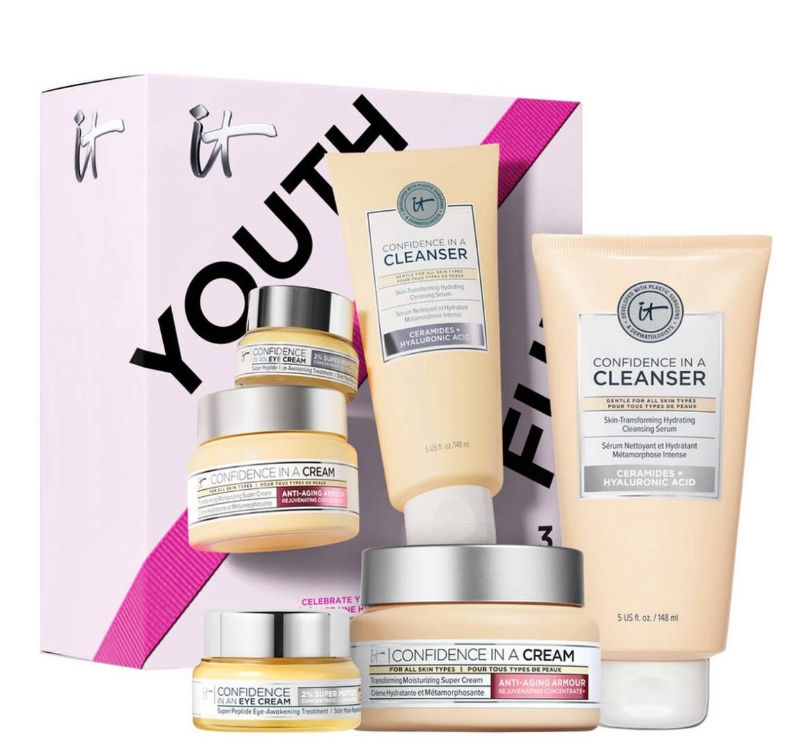 مجموعة متكاملة للعناية بالبشرة من علامة IT Cosmetics، مصممة لتمنحك تنظيفًا فعالًا وترطيبًا عميقًا في روتين يومي بسيط ومتوازن. يحتوي هذا الطقم على منظف للوجه، كريم نهاري، وكريم ليلي لتلبية احتياجات البشرة على مدار اليوم.
