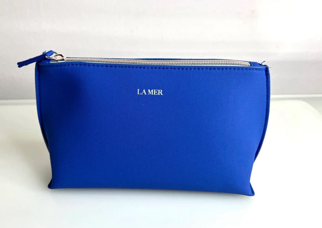 حقيبة مكياج أنيقة من لا مير باللون الأزرق الجذاب، مصممة لتكون عملية ومناسبة للاستخدام اليومي أو أثناء السفر. تتميز بحجم مناسب يساعد على تنظيم مستحضرات التجميل والعناية بالبشرة بسهولة داخل الحقيبة. يأتي التصميم بسيطًا وراقيًا يعكس فخامة علامة لا مير، وهي مصنوعة من مواد متينة وخفيفة مع سحاب علوي يحافظ على المحتويات بأمان، مما يجعلها خيارًا عمليًا لحمل مستحضراتك الأساسية أينما ذهبت