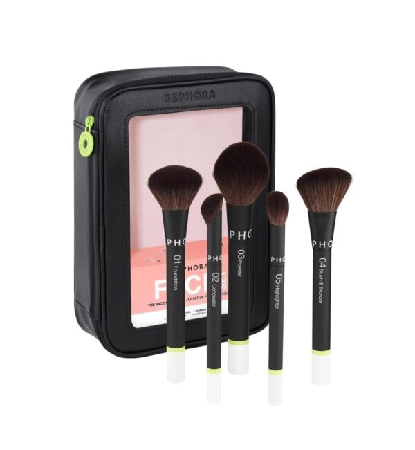 مجموعة Face Brush Set من Sephora تضم 5 فراشي أساسية لتطبيق مكياج الوجه بسهولة واحترافية.