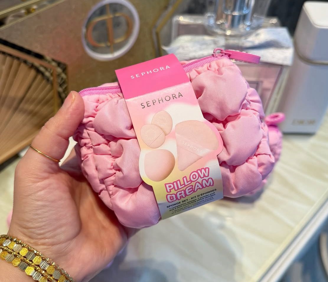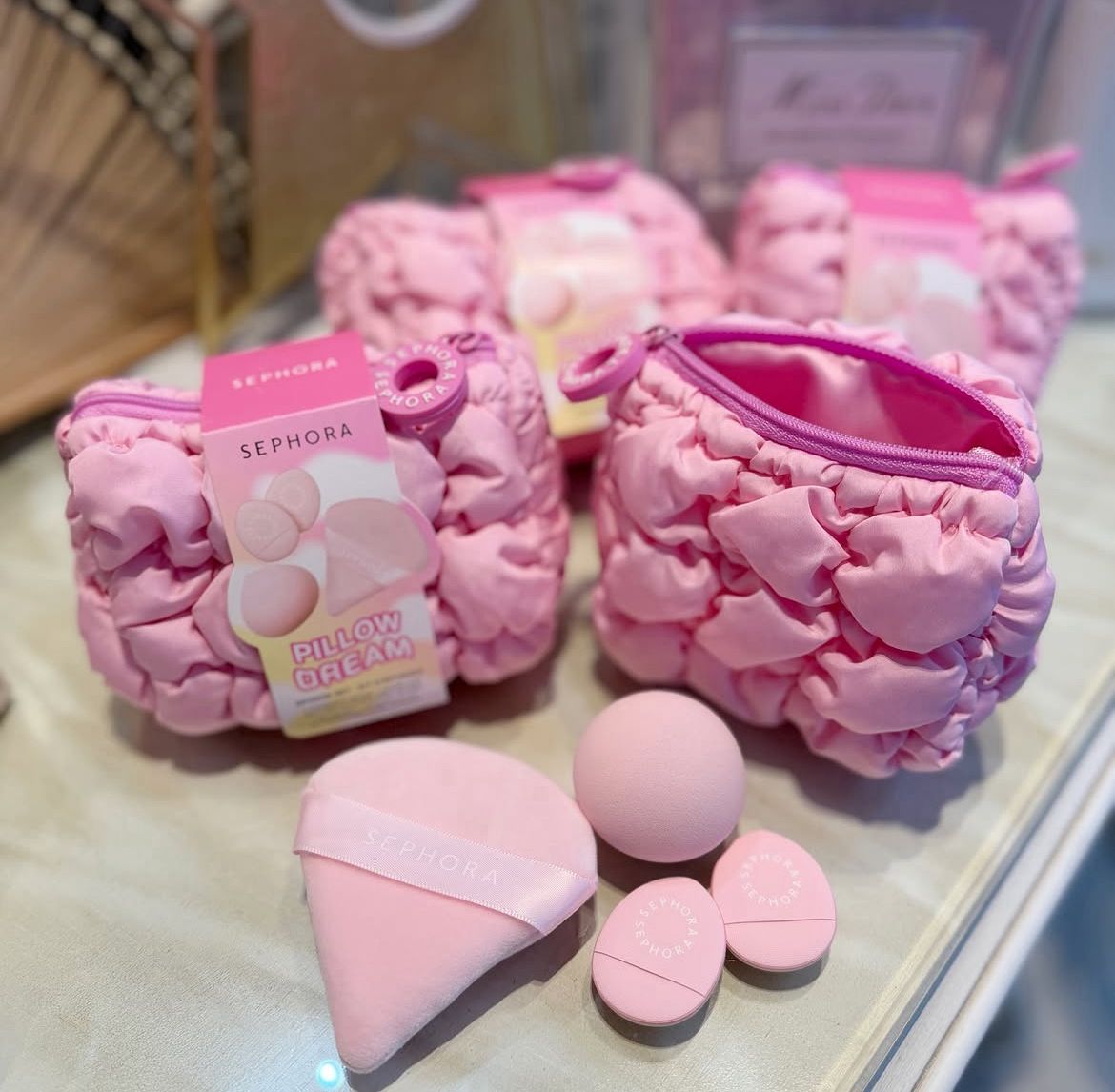 مجموعة إسفنجات مكياج من سيفورا إصدار محدود، تأتي بتصميم ناعم وفاخر يشبه ملمس الوسادة، داخل حقيبة صغيرة عملية وأنيقة مثالية للتخزين والسفر. تتميز الإسفنجات بملمسها الفائق النعومة الذي يساعد على توزيع كريم الأساس والكونسيلر بشكل متساوٍ وسلس دون ترك خطوط أو تكتلات، مما يمنح البشرة مظهر طبيعي ومندمج.