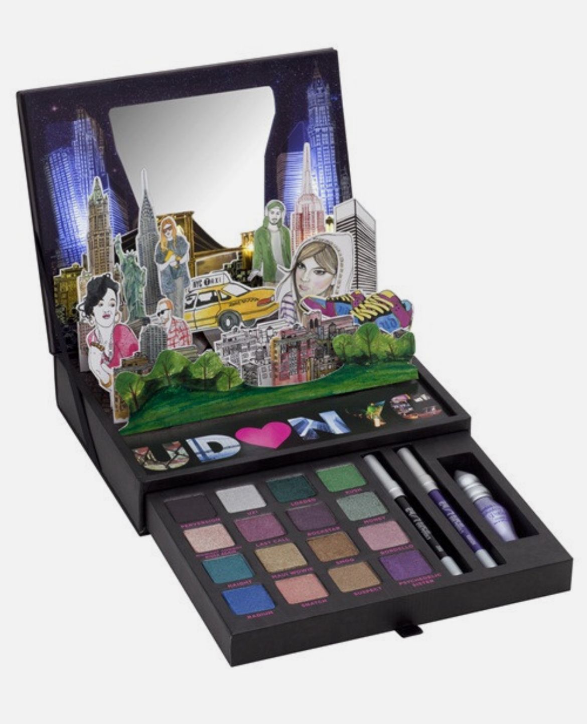 تتميز اللوحة بتصميم ثلاثي الأبعاد ينبض بالحياة عند فتحها، مع مشهد مجسم لمدينة نيويورك يضيء، مما يجعلها قطعة فنية قابلة للاقتناء وليست مجرد منتج تجميلي. تحتوي على مجموعة متنوعة من ظلال العيون بألوان جريئة ومبتكرة، تشمل درجات مات ولامعة وميتاليك، تتنوع بين الألوان الحيادية والألوان الزاهية مثل الأخضر، البنفسجي، الأزرق والذهبي.