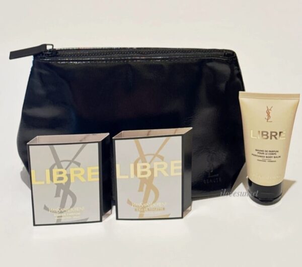 مجموعة هدايا فاخرة من إيف سان لوران مستوحاة من عطر LIBRE الأيقوني، تأتي في حقيبة أنيقة مثالية لتقديمها كهدية مميزة.